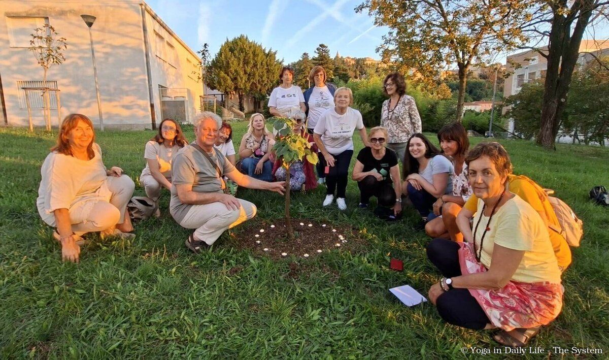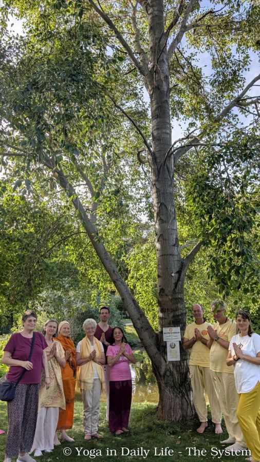 Yoga practitioners and devotees gathered at the World Peace Trees around the world, planted by the founder of the Yoga in Daily Life System, Vishwaguru Mahamandaleshwar Paramhans Sri Swami Maheshwarananda Puri Ji - Vishwaguruji.