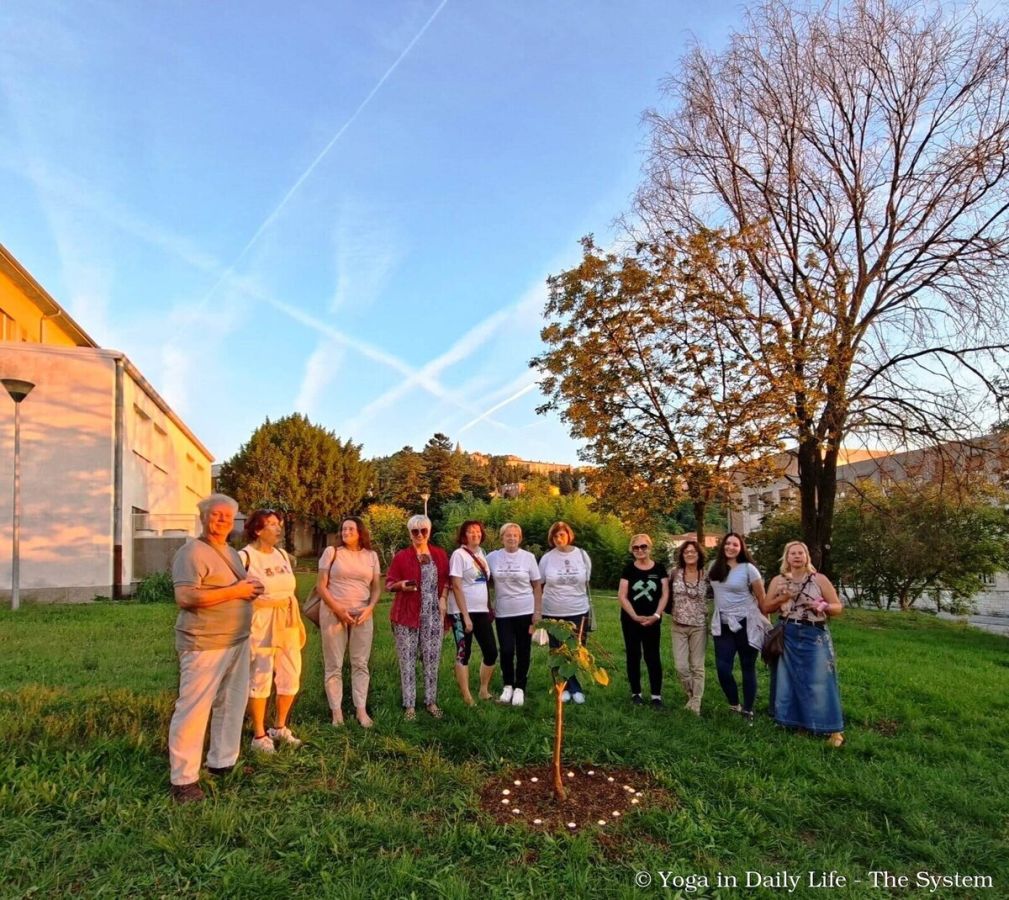 Around the Peace Tree in Nadlac, planted by Vishwaguruji, Yoga in Daily Life practitioners and devotees gathered to sing prayers and mantras for world peace. On this occasion, in an effort to raise awareness that peace starts within and blossoms outwards, a 10-day Online Meditation for Inner Peace Sadhana was offered, open to all Romanian yoga students and others who wished to join.