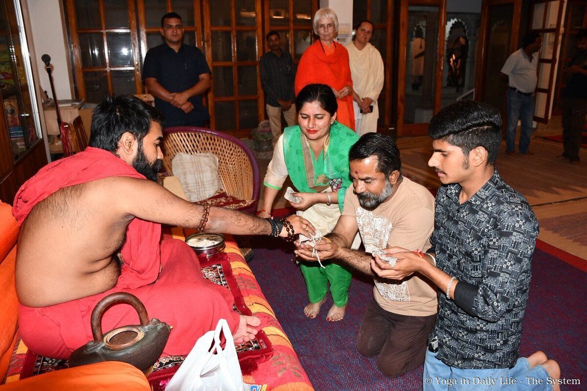 At the Nipal Ashram, devotees felt the powerful spiritual energy of Holy Guruji. Niranjan Ji shared touching memories, reminding everyone of the living grace of the Parampara. Pujya Maharaj Ji Swami Avatar Puriji distributed prashad to the children of the Nipal school, blessing them for their upcoming exams.