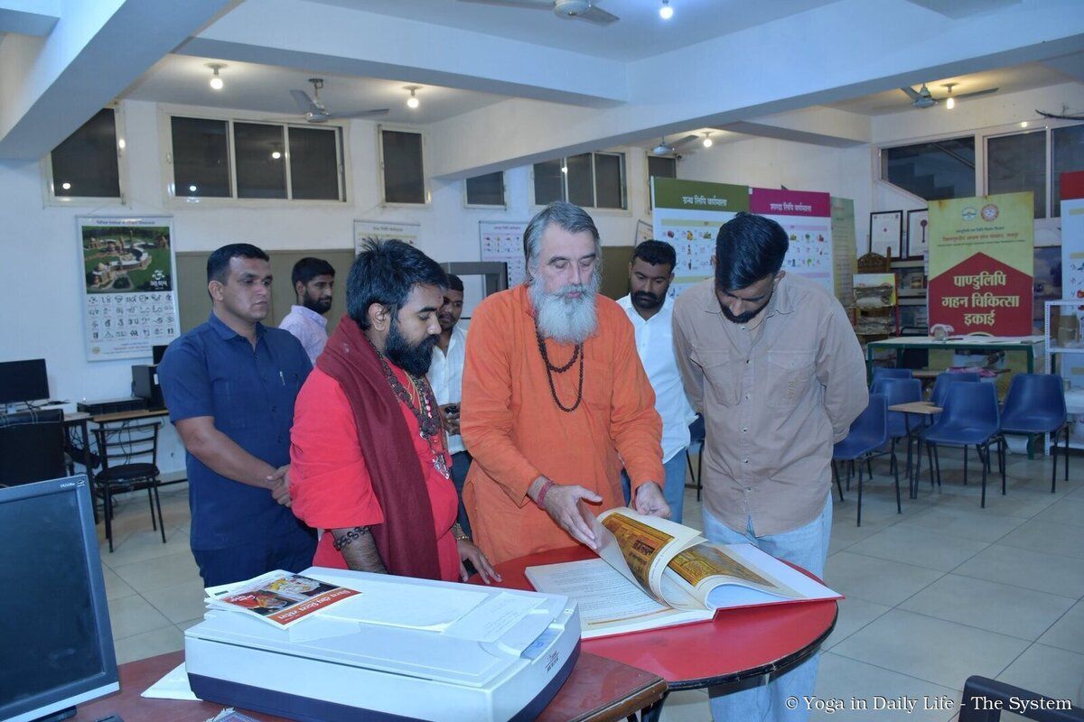 The distinguished guests who visited the Ashram were personally shown the Manuscript Research Centre by Pujya Maharaj Swami Avatar Puri Ji. The Centre, which operates under the esteemed guidance of Mahamandaleshwar Swami Gyaneshwar Puri Ji, is dedicated to the preservation and scholarly study of ancient spiritual and cultural manuscripts.