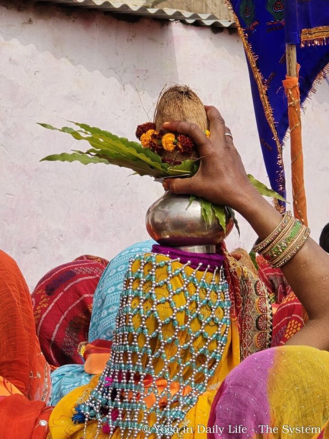 Hundreds of women carried the sacred Kalash, each filled with pure water, topped with a coconut, and decorated with mango leaves.